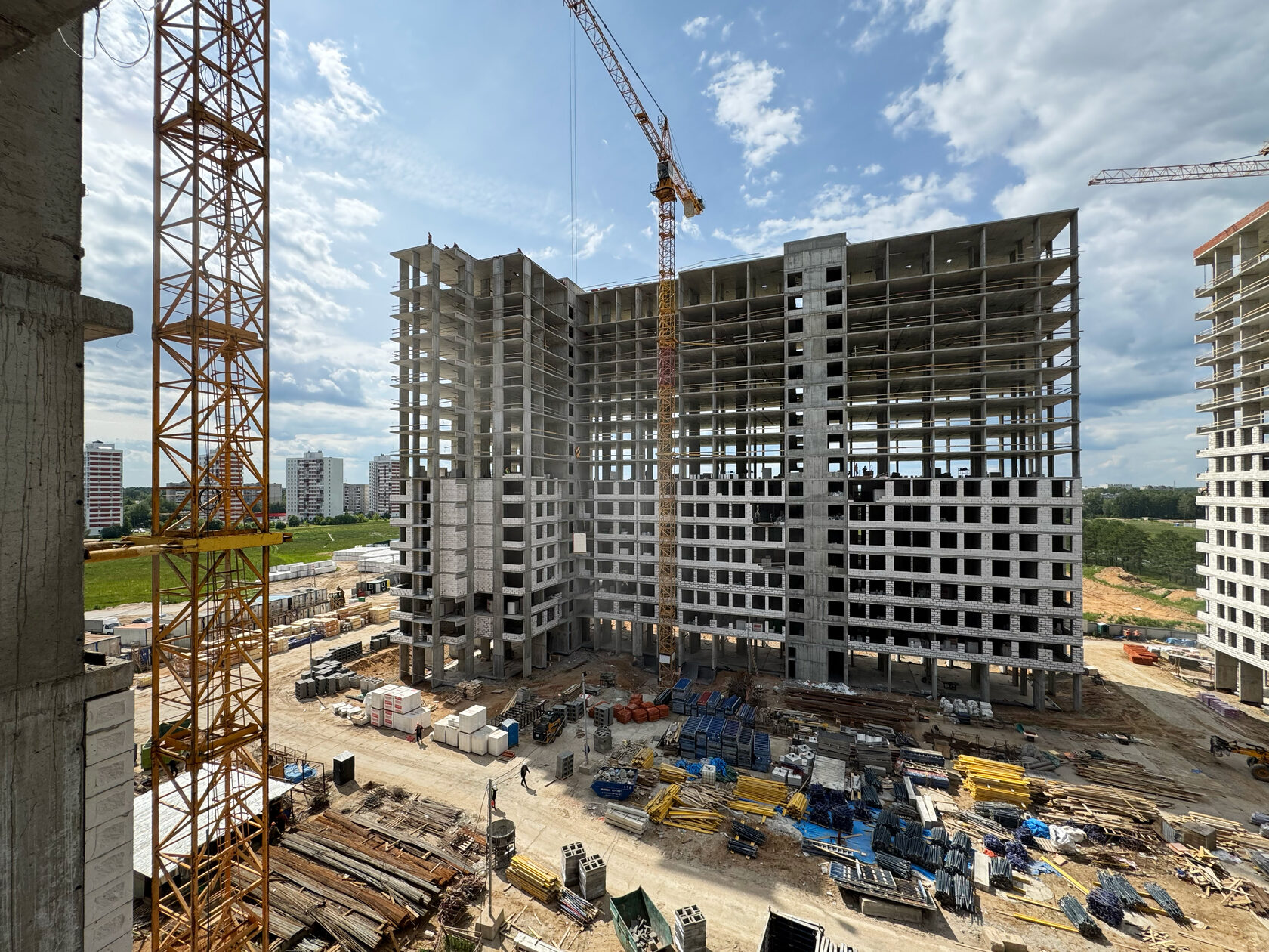 Строители раньше срока завершили возведение железобетонного каркаса двух многоэтажных домов номер 1 и 3.
