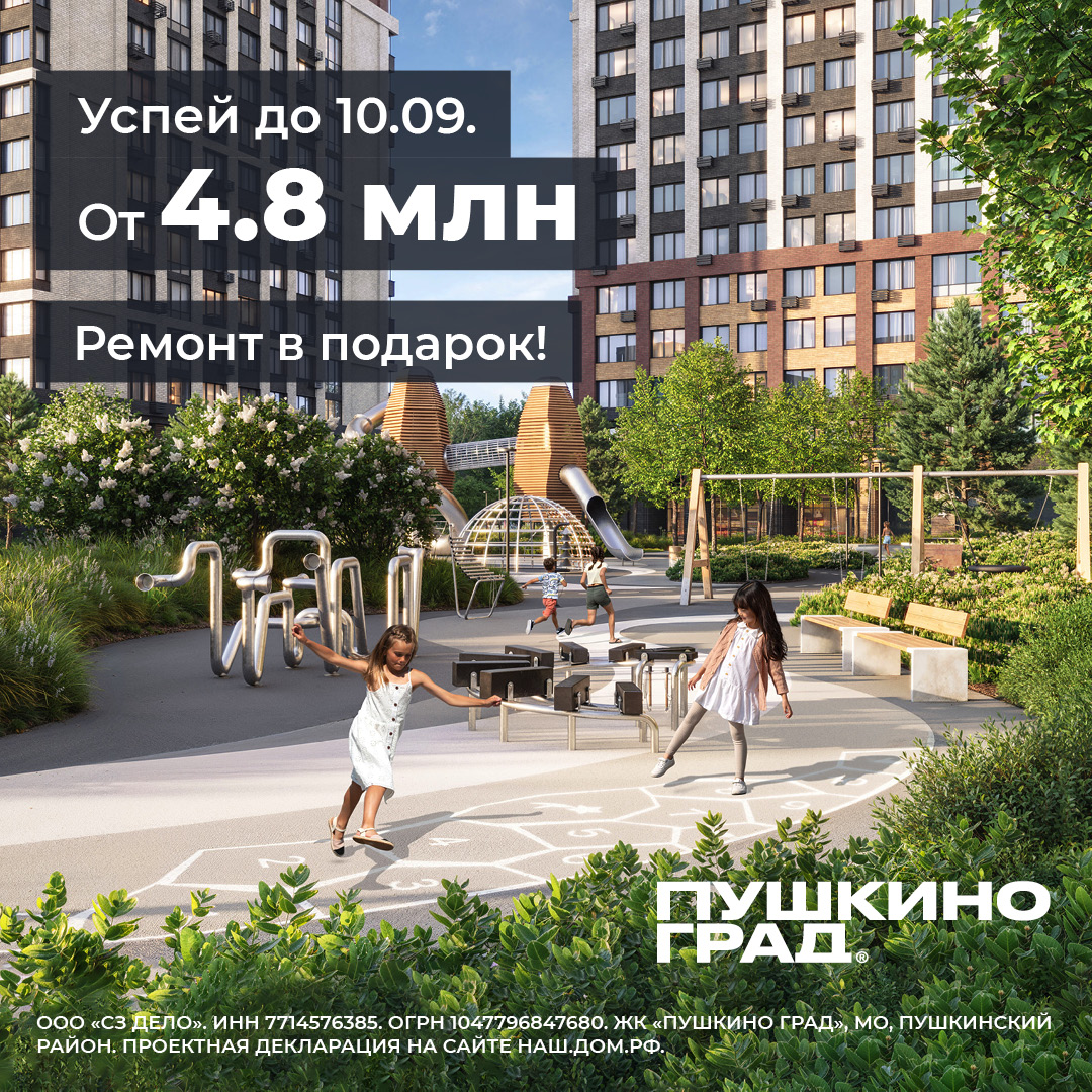 С 10 сентября стоимость квартир в ЖК «Пушкино Град» повышается. Это отличная новость для тех, кто уже инвестировал в наш проект, и выгодный момент для тех, кто еще сомневается!
